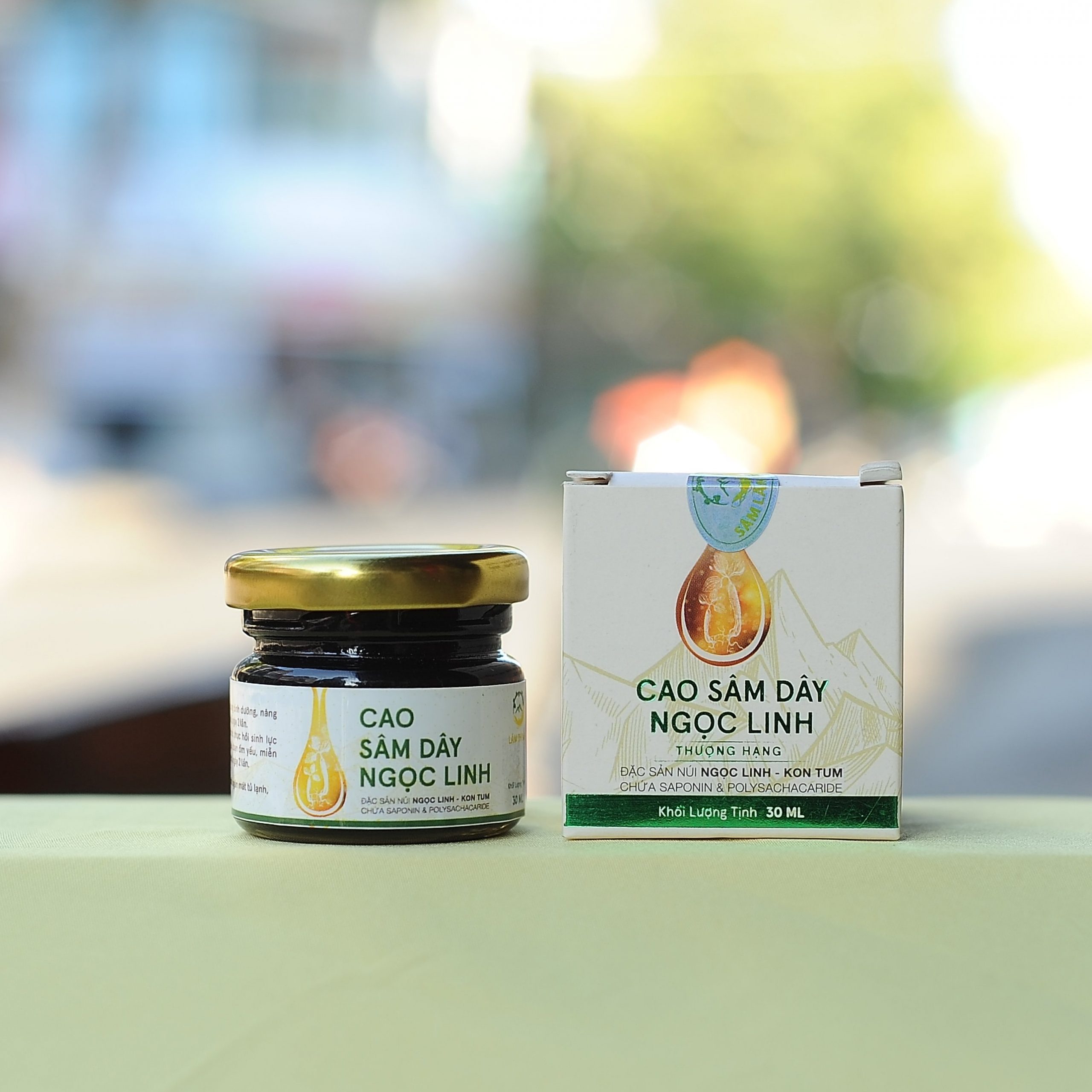 Với công nghệ chế biến sâm từ Hàn Quốc, Cao Sâm NGỌC LINH được cô đặc từ 100% củ Sâm tươi kết hợp với một số vị trong Đông y như Tam Thất, lá sâm Ngọc Linh (Quốc bảo) và Hoàng Kỳ tạo nên một loại thức uống đặc biệt với giá trị dinh dưỡng cao. Với thành phần chính là SaPonin và Polysaccharide hàm lượng cao, chiết suất ở dạng chất dẻo có thể hòa tan vào nước ấm hoặc ăn trực tiếp.