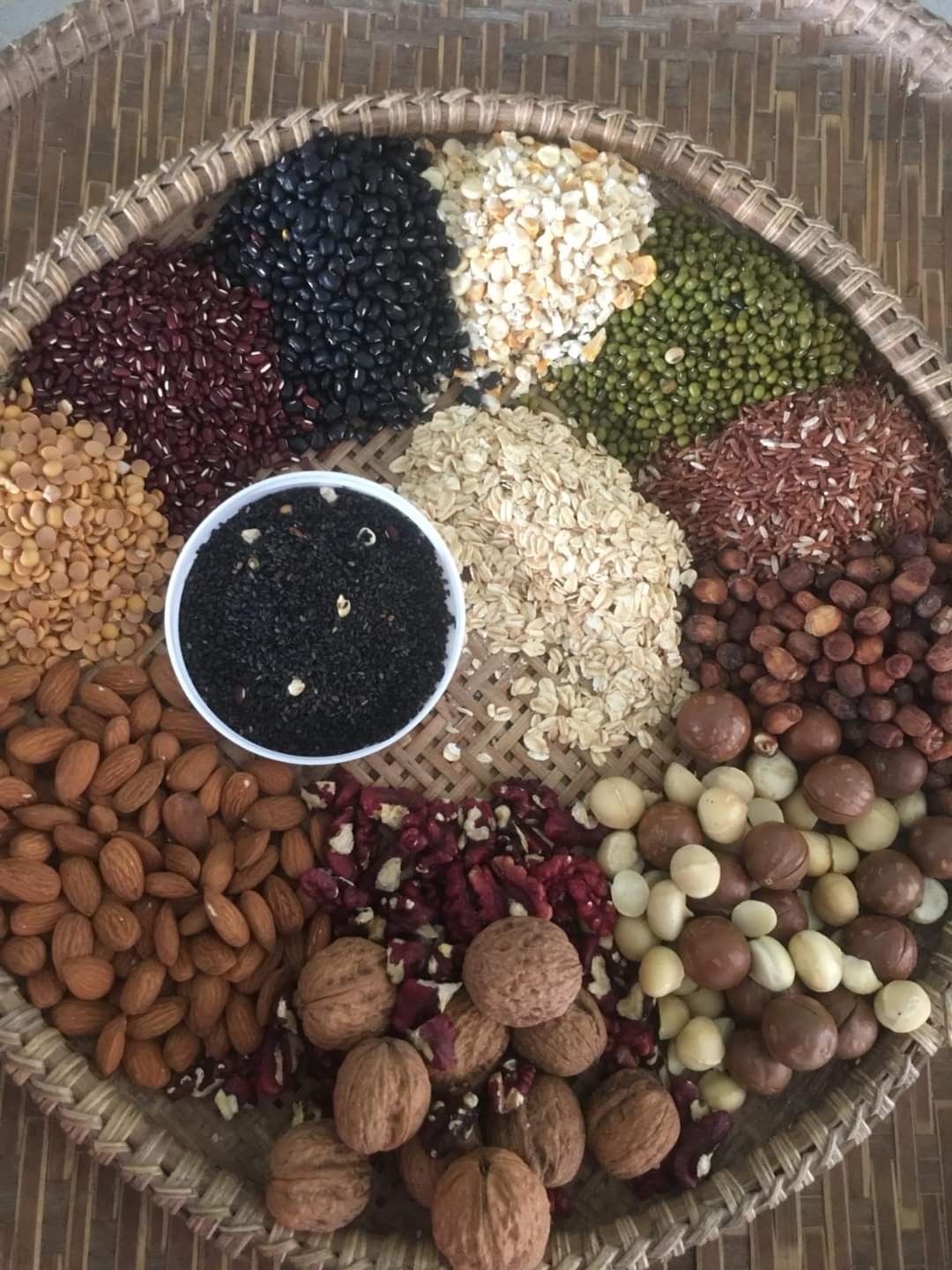Ngũ cốc FAIMY 9 lựa chọn nguồn nguyên liệu sạch như hạt macca, óc chó, yến mạch, hạt sen….và sự trộn lẫn của các loại hạt đỗ. Hàm lượng dồi dào chứa chất xơ, khoáng chất, vitamin là nguồn cung cấp năng lượng tốt cho cơ thể